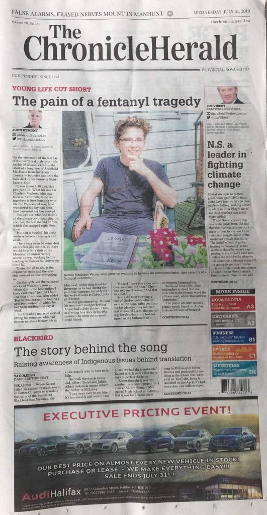 Archie MacIsaac Vacon died from an unintentional fentanyl poisoning on June 29, 2019. He was 19. Archie’s mother, Charlene Vacon, wants to know what the candidates in the federal election are going to do about the toxic drug crisis. We can’t keep losing our families to tainted street drugs, but to curb the growing death toll we need a better plan than what we have now.